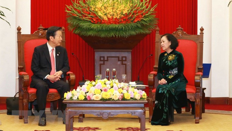 22日午後、党中央本部で、越・日友好議員連盟会長のチュオン・ティ・マイ党書記局常務は同代表団と会見しました。