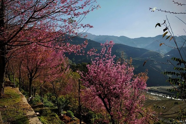 北部山岳地帯イエンバイ省ムーカンチャイ県は「トーゼイ(To day)」という花のピンク色に染まっている。(Thịnh Đào)