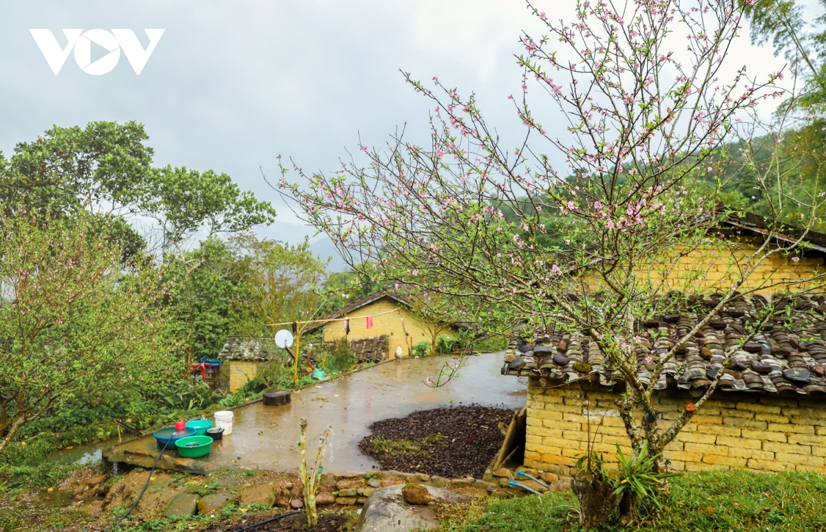 北部山間部で満開している桃の花