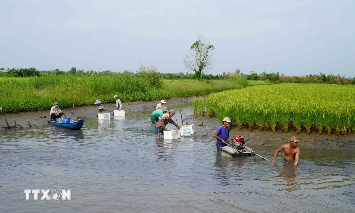 南部キエンザン省アンミン県における稲作とエビ養殖を組み合わせたモデル(写真:Văn Sĩ/TTXVN)