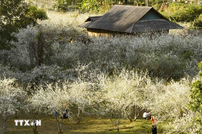 北部山間部ディエンビエン省フィエンバン村で咲く梅の花(写真:Xuân Tư/TTXVN)