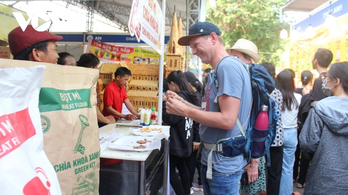 ベトナムのバインミーを試食する観光客(写真:Tỷ Huỳnh/VOV-TPHCM) |