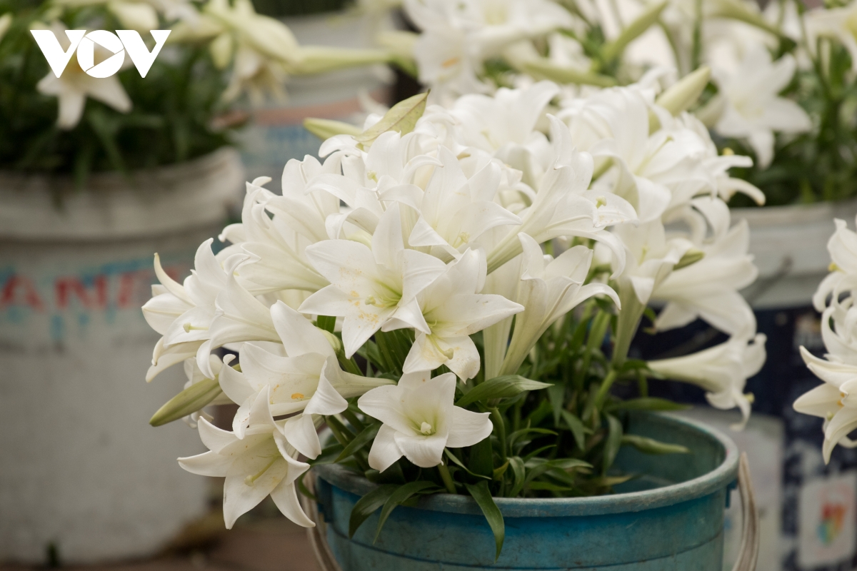 4月に入り、ハノイいろんなところで白百合(しらゆり)の花が見られる=VOV |