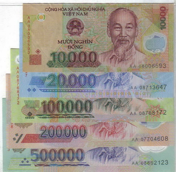 ベトナムでは1万ドン~50万ドンの高額のポリマー紙幣が流通している。(写真:インターネット)