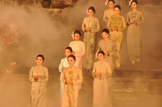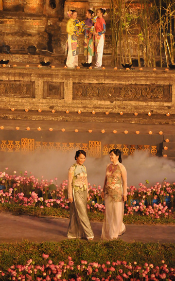ベトナム古都フエ市で開催中のフエ・フェスティバル2012には様々な文化、芸術、観光活動が行われていますが、この写真記事で、ベトナム人女性の伝統衣装アオザイを披露するアオザイ祭りをご紹介します。この祭りは、9日夜開催されましたが、国内外の観光客多数を誘致しました