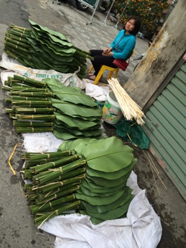 テトの特別な料理バィン・チュンを包むための葉っぱゾン