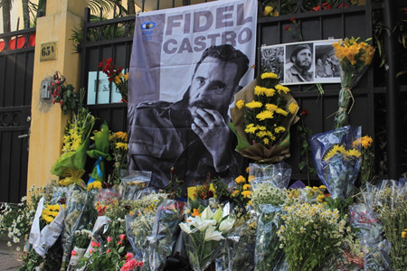 この間、ハノイ市民はハノイ駐在キューバ大使館に弔問し、弔慰の記帳をしています。