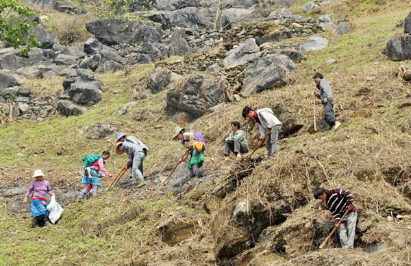 3月から各民族の人々が耕作地を準備。手作業だけでなく・・・