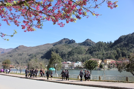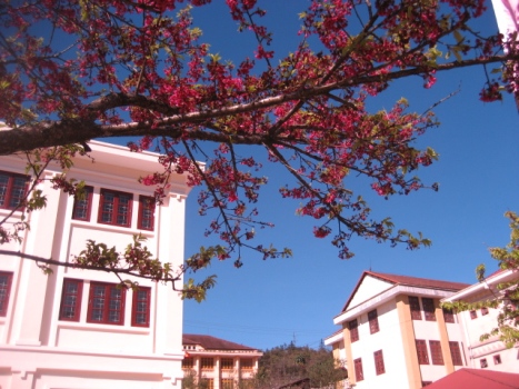 市内に戻って、サパ人民委員会(行政当局)本部で植えられた日本の桜の花見に行った。