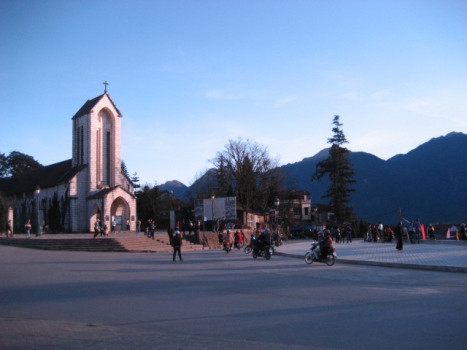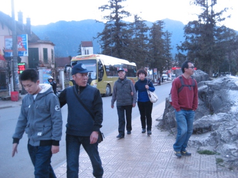 サパはいつも外国人観光客で賑やか。これらの観光客は中国人みたいだが、日本人だ