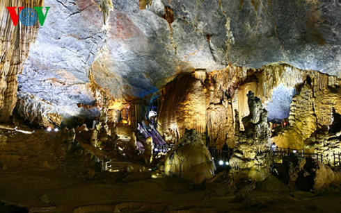 この洞窟は中部クアンビン省ボーチャク県ソンチャク村にあります。「ティエン・ドゥオン洞窟(天国の洞窟)」と名付けられたこの鍾乳洞は全長31キロで、150メートルの深さに巨大な空間が広がっています。2010年に公開されました。