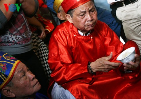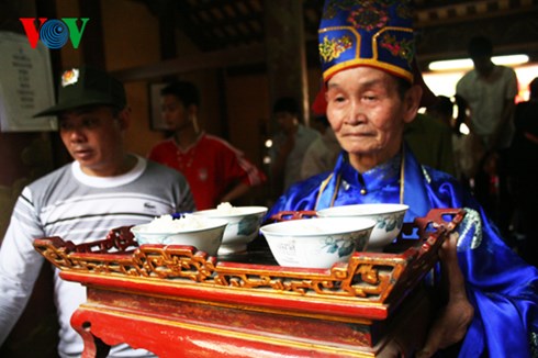 先ず、そのご飯を村の保護神に供養