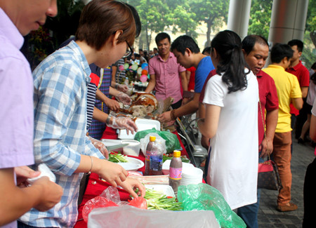 VOVの電子新聞のブース。丸焼き豚肉は美味しいそう