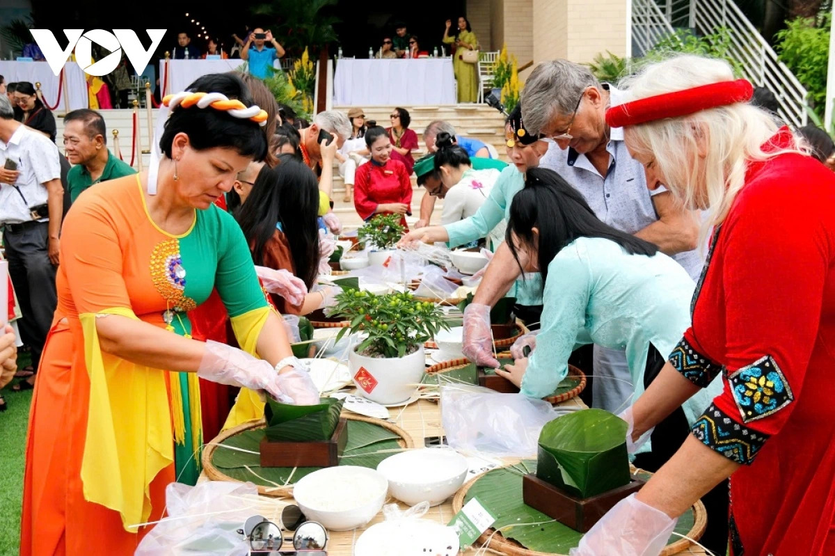 観光客がバインチュン作りを体験(写真:Đoàn Sĩ/VOV-TP.HCM)