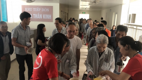 (VOVWORLD) - ជារៀងរាល់បីថ្ងៃម្តងក្នុងមួយសប្តាហ៍ ពោលគឺថ្ងៃអង្គា សៅរ៍និងថ្ងៃអាទិត្យ ក្រុមអ្នកស្ម័គ្រចិត្តសរទរដូវនិងមិត្តភក្តិរបស់ពួកគេ តែងមមាញឹកក្នុងការចម្អិននិងចែកចាយបបរដោយឥតគិតថ្លៃជូនដល់អ្នកជំងឺក្រីក្រនៅក្នុងមន្ទីរពេទ្យ ចំនួន ៦ នៅរដ្ឋធានីហាណូយ។ ចានបបរក្តៅៗបានផ្តល់ជូនអ្នកជំងឺមិនត្រឹមតែជាការបំប៉ន់អាហាររូបត្ថម្ភប៉ុណ្ណោះទេ ថែមទាំងបង្កប់ក្នុងនោះនូវអត្ថន័យនៃក្តីស្រឡាញ់និងចែករំលែកជាមួយជីវិតរបស់អ្នកជំងឺដែលមានស្ថានភាពលំបាក ក៏ដូចជាជួយផ្តល់នូវកម្លាំងចិត្តដើម្បីឲ្យអ្នកជំងឺទាំងនោះ តាំងចិត្តដើម្បីយកឈ្នះជំងឺទាំងឡាយ។