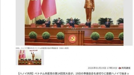 (VOVWORLD) - នាថ្ងៃទី ២០ ខែមករា ប្រព័ន្ធផ្សព្វផ្សាយជប៉ុនបានចុះផ្សាយអទ្ថបទជាច្រើនអំពីពិធីបើកមហាសន្និបាតតំណាងទូទាំងប្រទេសលើកទី ១៤ របស់បក្សកុម្មុយនីស្តវៀតណាម ដោយសង្កត់ធ្ងន់លើអត្ថន័យនយោបាយនៃព្រឹត្តិការណ៍នេះ និងគោលដៅសេដ្ឋកិច្ចក្នុងរយៈពេល ៥ ឆ្នាំខាងមុខ។