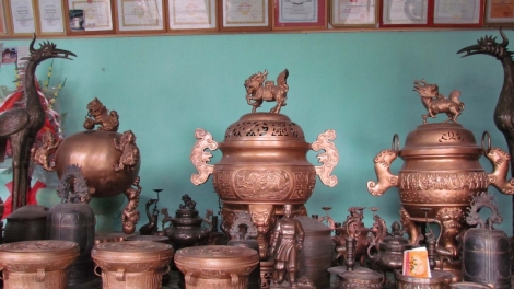 (VOVWORLD) - ស្ថិតនៅចម្ងាយប្រមាណ៣០គីឡូម៉ែត្រតាមទិសអាគ្នេយ៍ពីទីក្រុង ហាណូយ ភូមិ Long Thuong ឃុំ Dai Dong ស្រុក Van Lam ខេត្ត Hung Yen ត្រូវបានគេស្គាល់ដល់ដោយរបរចាក់ពុម្ភសំរិទ្ធប្រពៃណី។ ផលិតផលដ៏ ល្អប្រណិតនៃភូមិ Long Thuong បានមានវត្តមាននៅខេត្ត ក្រុងជាច្រើនលើ ទូទាំងប្រទេស។