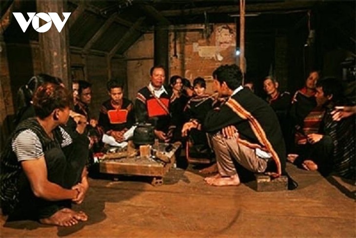សិប្បករជនជាតិ Ede កំពុងដំណាលរឿងវីរកថាដោយប្រើប្រាស់ពាក្យចាប់ចុងចួន។ (រូបថត៖ VOV) |