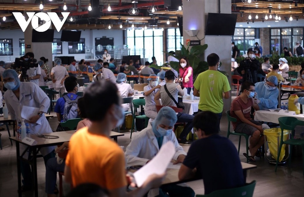 កម្មករជាច្រើននៅទីក្រុងហូជីមិញបានចាក់វ៉ាក់សាំងប្រឆាំងនឹងកូវីដ-១៩ នាថ្មីៗនេះ (រូបថត៖ VOV) |