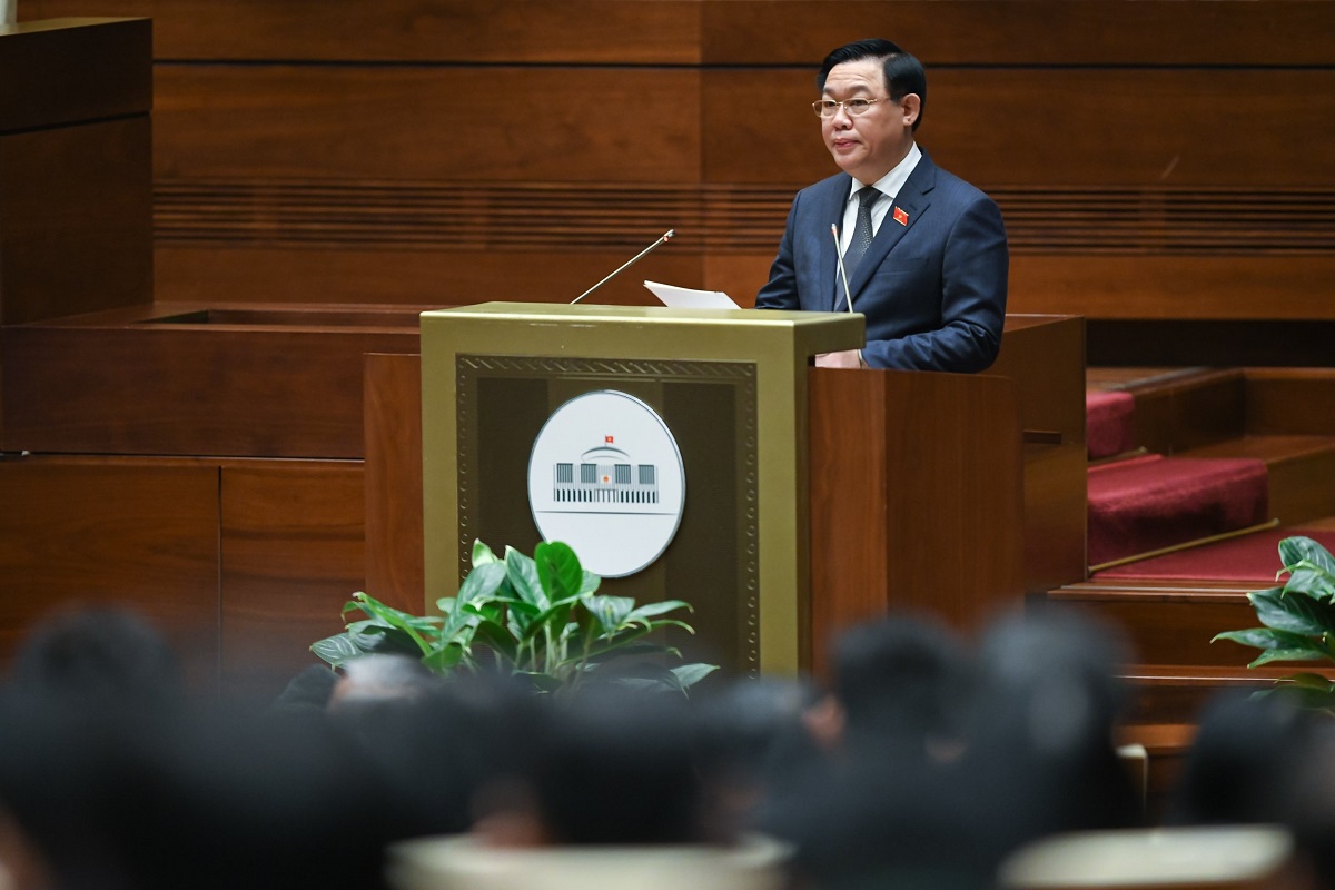 ប្រធានរដ្ឋសភា លោក Vuong Dinh Hue អញ្ជើញថ្លែងមតិក្នុងសម័យប្រជុំ។ (រូបថត៖ quochoi.vn)