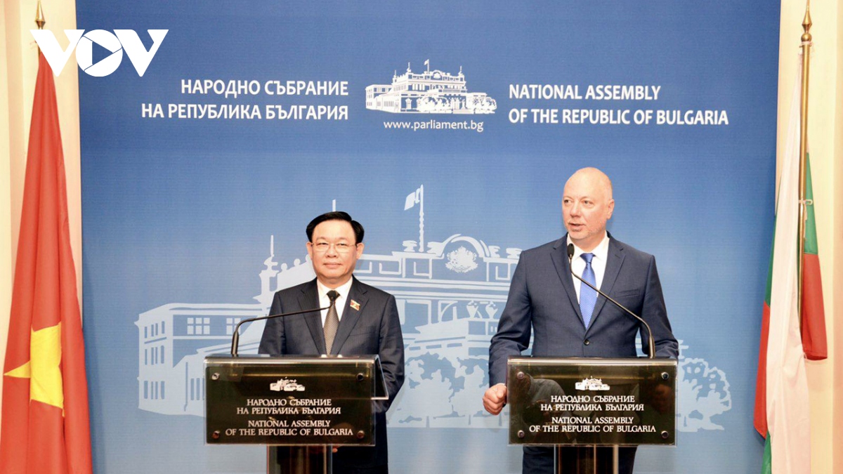ប្រធានរដ្ឋសភា លោក Vuong Dinh Hue និងប្រធានរដ្ឋសភាប៊ុលហ្គារី លោក Rosen Zhelyazkov បានធ្វើសន្និសីទសារព័ត៌មានរួមគ្នា។ រូបថត៖ VOV |
