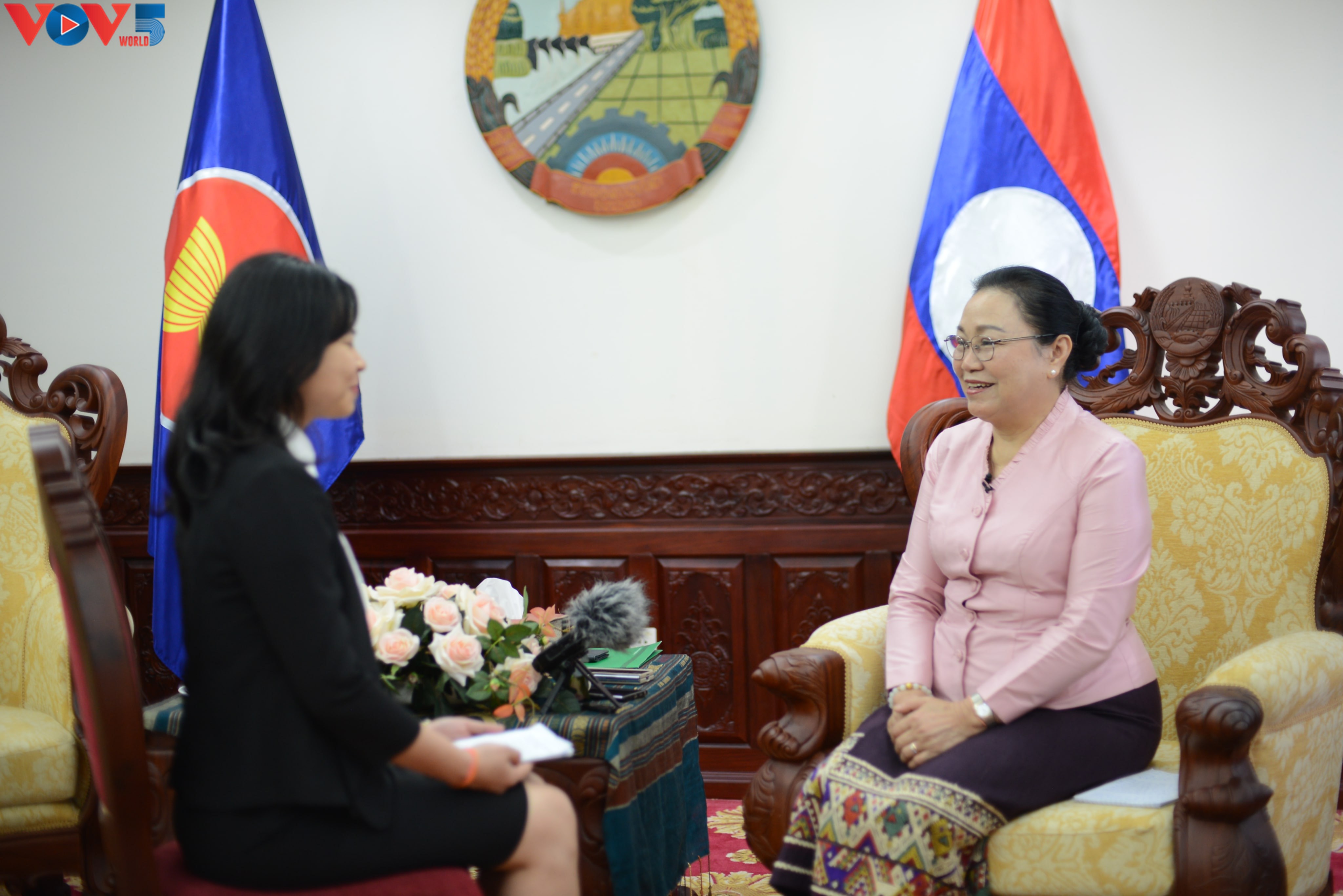 លោកស្រី Khamphao Eunthavan ឯកអគ្គរដ្ឋទូតឡាវប្រចាំនៅវៀតណាមឆ្លើយសម្ភាសន៍របស់អ្នកសារព័ត៌មាននៃ VOV5។ |