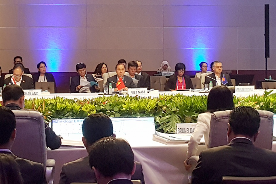 ចូលរួមក្នុងសន្នសីទនេះ តំណាងចូលរួមបានពិភាក្សាអំពីស្ថានភាពនៅសមុទ្រខាងកើត និងពិភាក្សាលើវិធានការពិគ្រោះយោបល់អាស៊ាន-ចិន ស្តីពីសេចក្តីថ្លែងការណ៍ស្តីពីការប្រតិបត្តិរបស់ ភាគីនានានៅសមុទ្រខាងកើតនិងក្រមប្រតិបត្តិតំបន់សម្រាប់ភាគីនៅសមុទ្រខាងកើត(COC)។ប្រទេស ទាំងអស់បានឯកភាពជាឯកច្ឆ័ននូវរបៀបវារៈ សកម្មភាពនិងសន្និសីទពាក់ព័ន្ធនានាដែលបានប្រព្រឹត្តទៅ នាខែសីហាឆ្នាំ២០១៧។ អនុរដ្ឋមន្ត្រីការបរទេសវៀតណាម លោក Nguyen Quoc Dung ប្រធាន SOM ASEAN វៀតណាមដឹកនាំគណៈប្រតិភូវៀតណាមចូលរួមបណ្តាសន្និសីទនេះ៕