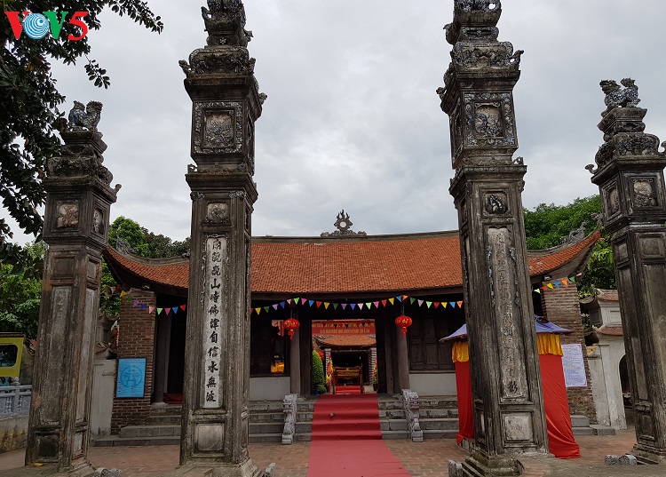 “សាលាភូមិនេះត្រូវបានកសាងតាមអ័ក្សជើង-ត្បូង មុខបែរទៅរក ទន្លេក្រហម។ នៅវៀតណាម កម្រមានសាលាភូមិណា ដែលបានសាងសង់ឡើងតាម បែបដូច្នេះឡើយ។ សាលាភូមិនេះត្រូវបានកសាងឡើងតាមស្ថាបត្យកម្មក្នុងរាជវាំង ដោយ មានអគារជាប់ៗគ្នា។ វត្ថុតាងថ្លៃថ្លាបំផុតដែលបានថែរក្សានៅទីនេះគឺរូបសំណាក ធ្វើពីឈើខ្លឹមច័ន្ទចំនួន១០អង្គ។ ក្រៅពីនោះក៏មានគ្រឿងសែនបុរាណទៀតផង”
