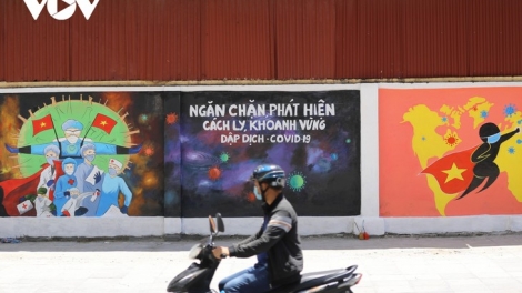 ភាពវិសេសវិសាលនៃផ្ទាំងគំនូរឃោសនាការបង្ការប្រឆាំងកូវីដ ១៩ នៅកាច់ជ្រុងដងវិថីទីក្រុងហាណូយ