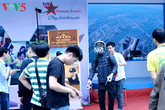 | ស្តង់ទំនិញរបស់ប៉ូស្តិ៍ទូរទស្សន៍ Vietnam Journey នៃវិទ្យុសម្លេង វៀតណាមនាំមកនូវបទពិសោធន៍គួរអោយចាប់អារម្មណ៍តាមរយៈការលេងល្បែងកំសាន្តប្រកបដោយបច្ចេកវិទ្យាការពិតនិម្មិត។ |