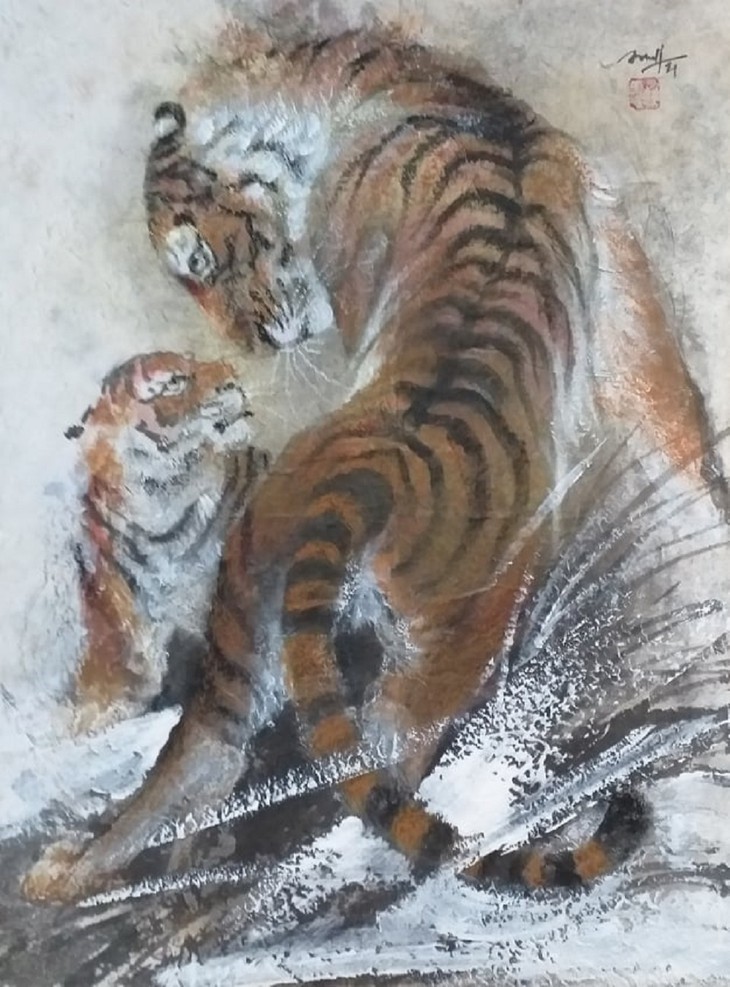 តាមរយៈគំនូរខ្លា វិចិត្រករ Nguyen Doan Ninh មានគោលបំណងអំពីឆ្នាំថ្មី ឆ្នាំខាល ចត្វាស័ក ២០២២ ដែលពោរពេញទៅដោយភាពខ្លៀវក្លា និងមនោសញ្ចេតនា។