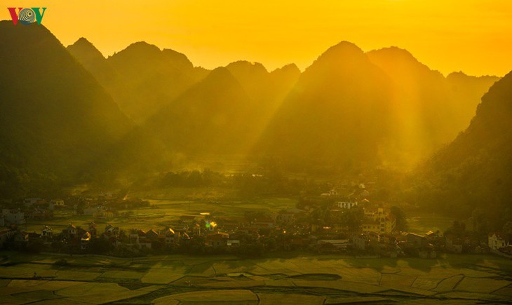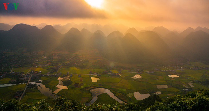 ពេលព្រះអាទិត្យរះនៅជ្រលងភ្នំ Bac Son ពិតជាស្រស់បំព្រងណាស់ |