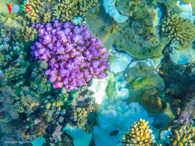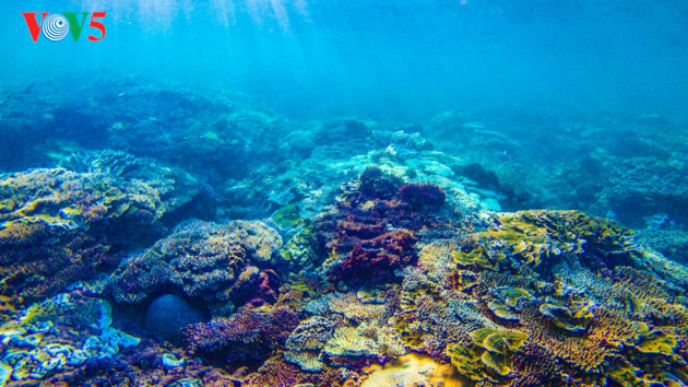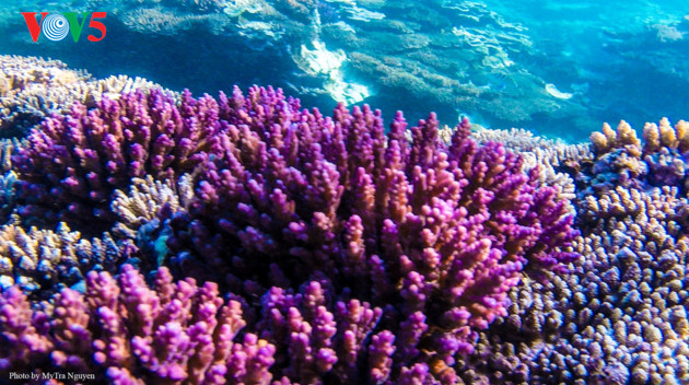 | ផ្កាថ្មរីកលូតលាស់ពេញឆ្នេរសមុទ្រ Ganh Yen។ |