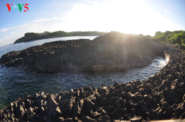| ក្រោយរយៈពេលរាប់លានឆ្នាំ សិលាកំទេចកំនរភ្នំភ្លើងត្រួតស៊ីគ្នានៅជុំវិញ ឆ្នេរសមុទ្រស្រុក Binh Son បង្កើតឡើងរមណីយដ្ឋាន Ganh Yen។ |