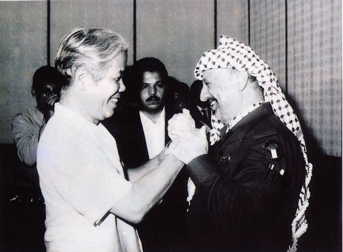 លោក Do Muoi ទទួលជួបជាមួយ លោក Yasser Arafat ប្រធានរដ្ឋប៉ាឡេស្ទីន |