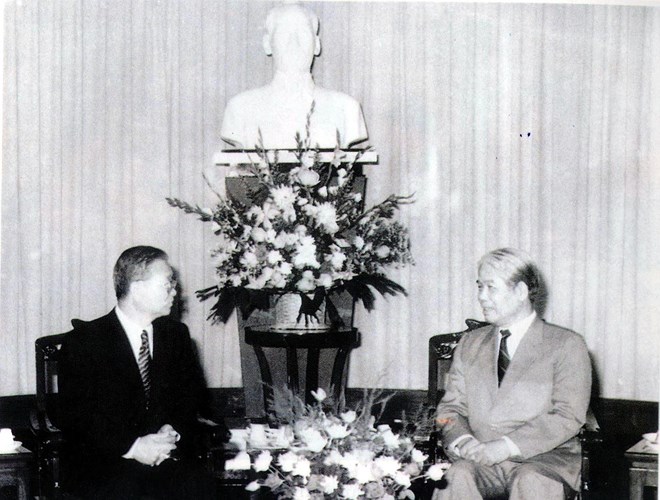 លោក Do Muoi ទទួលជួបជាមួយ នាយករដ្ឋមន្ត្រីកូរ៉េខាងត្បូងលោក Lee Young Dug |