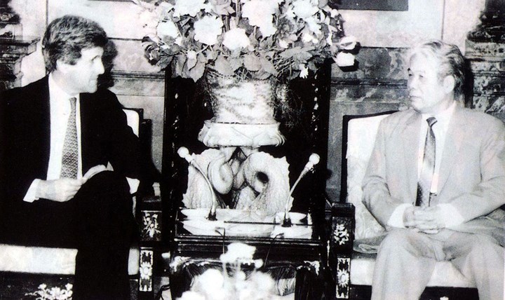 លោក Do Muoi ទទួលជួបជាមួយ ព្រឹទ្ធសមាជិក John Kerry |