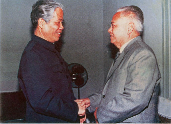 លោក លោក Do Muoi និងលោក Souophanouvong អតីតនាយករដ្ឋមន្ត្រីនៃសាធារណរដ្ឋប្រជាធិបតេយ្យប្រជាមានិតឡាវ។ |