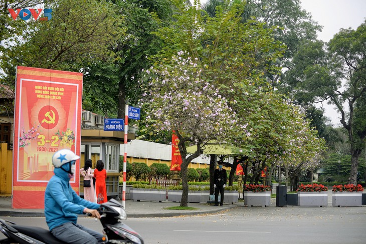 វិថី Bac Son - Hoang Dieu ជាទីកន្លែងផ្សារភ្ជាប់នឹងរូបភាពផ្កាជើងគោ ដែលបាន ទាក់ទាញមនុស្សជាច្រើនកុះករមកថតរូប ទុកអនុស្សាវរីយ៍។ |
