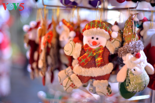 នេះគឺជាឱកាសសម្រាប់ក្រុមគ្រួសារជួបជុំគ្នាទទួលបុណ្យណូអែល នារដូវណូអែល នៅតាមដងវិថី Hang Luoc Hang Ma Cha Ca គឺពោរពេញទៅដោយ ពណ៌ចម្រុះរបស់ដើមស្រល់ណូអែល និងសំលៀកបំពាក់លោកតាណូអែល |