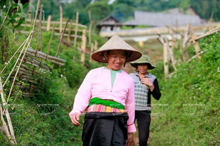 | ជនជាតិ Muong នៅ Lung Van រស់នៅយ៉ាងស្និទ្ធស្នាលធម្មជាតិ ហើយរួសរាយ រាក់ទាក់ជាមួយភ្ញៀវទេសចរ។ រូបថត៖ VNA |