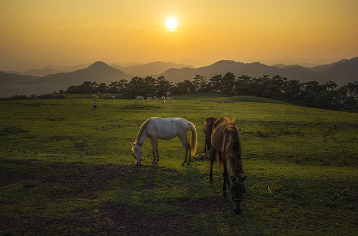 សេះស កំពុងស៊ីស្មៅ នៅលើទួលស្មៅខៀវស្រងាត់ បានក្លាយទៅជាប្រការដ៏វិសេសវិសាលនៅទីនេះ (រូបថត៖ dantri.com.vn) |