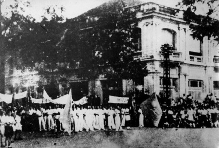 ប្រជាជន Sai Gon ធ្វើបាតុកម្មដណ្ដើមអំណាចនាថ្ងៃទី ២៥ ខែសីហាឆ្នាំ ១៩៤៥ (រូបថតឯកសារ) ។ ប្រភព៖ VNA