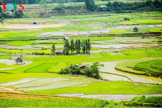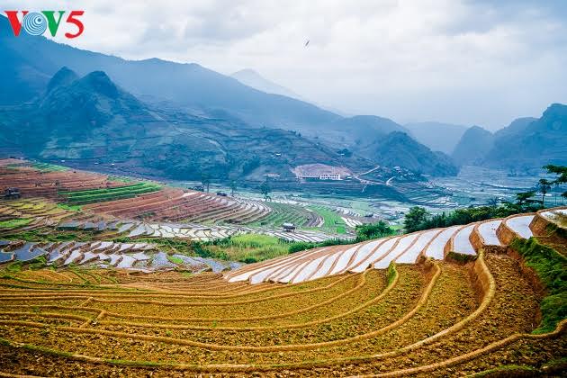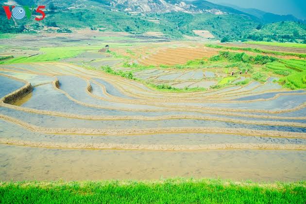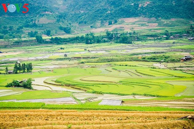 | ជ្រុងពណ៌មួយនៅច្រលងភ្នំ Cao Pha នារដូវស្ទូង |
