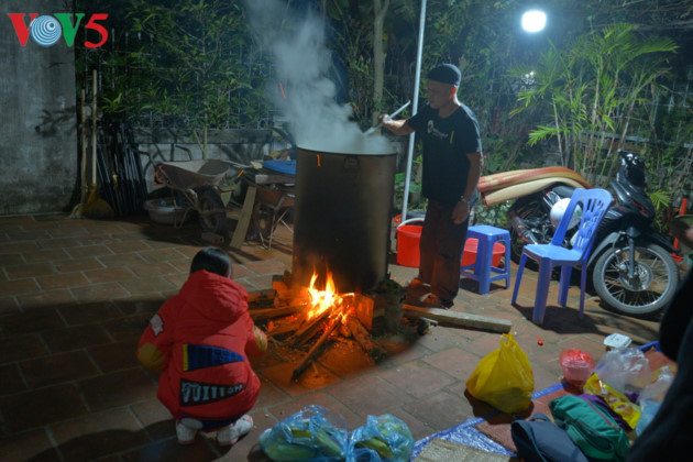 ក្រុមគ្រួសារមួយ បានបោះតង់ ត្រៀមខ្លួនជាស្រេចមើលឆ្នាំដាំនំអន្សមពេញមួយយប់