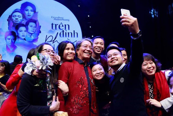 តន្ត្រីករ Pho Duc Phuong ថតរូបអនុស្សាវរីយ៍ជាមួយទស្សនិកជននៅ Liveshow “លើកំពូលភ្នំ Phu Van”។ (រូបថត៖ Tuoi Tre)។