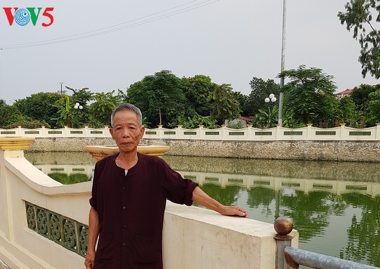 លោក Nguyen Tu Hung នៅក្បែរស្រះបរិស្ថានរបស់ភូមិ