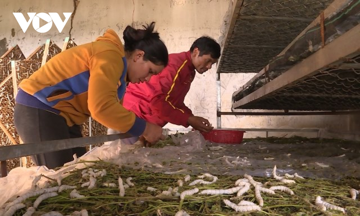 គ្រួសារជនជាតិភាគតិចជាច្រើននៅខេត្ត Lam Dong បានរួចផុតពីភាពក្រីក្រ និងកែលំអរជីវភាពរបស់ខ្លួនដោយការដាំដើមមនចិញ្ចឹមដង្កូវនាង (រូបថត៖ VOV) |
