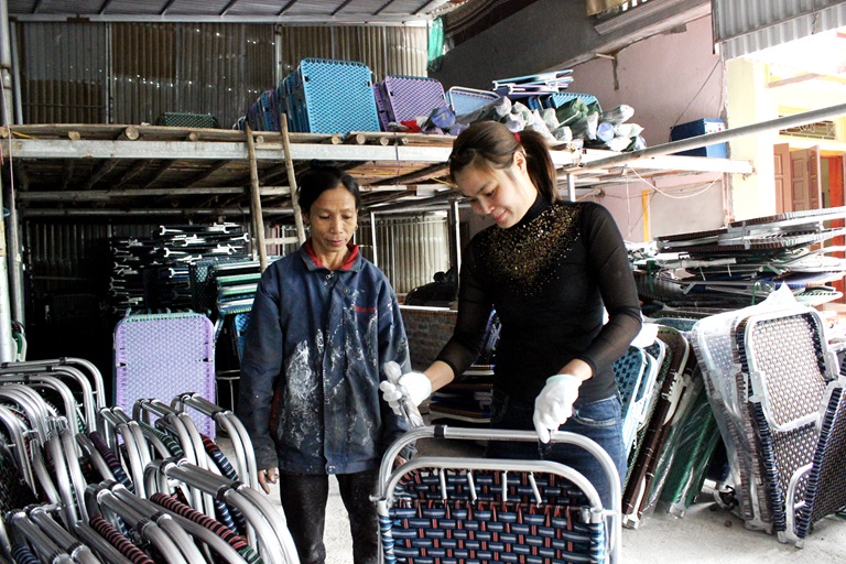 ដើម្បីឆ្លើយតបតម្រូវការរបស់អតិថិជន ម្ចាស់សិប្បកម្មត្បាញគ្រែមិនត្រឹមតែពង្រីកទ្រង់ទ្រាយផលិតកម្ម និងទីផ្សារប៉ុណ្ណោះទេ ថែមទាំងច្នៃប្រឌិតរបៀបចាក់ ជាមួយក្បូរក្បាច់រចនាខុសពីគ្នាទៀតផង។ លោកស្រី Tran Thi Sang ម្ចាស់សិប្បកម្មផលិតគ្រែបត់ Thuan Sang នៅ ឃុំ Yen Binh ស្រុក Vinh Tuong ខេត្ត Vinh Phuc បានឲ្យដឹងថា៖