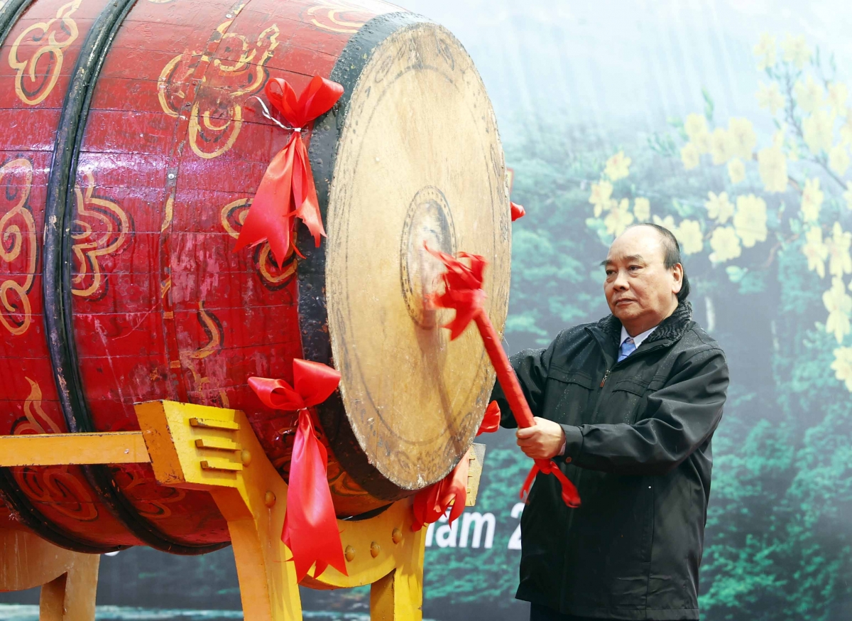 ប្រធានរដ្ឋវៀតណាម លោក Nguyen Xuan Phuc អញ្ជើញទូងស្គរបំផុសបុណ្យតេតដាំដើមឈើ “ដឹងគុណលោកប្រធានហូជីមិញជានិច្ច”